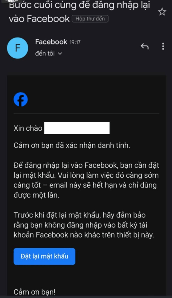 • Bước 3: Thực hiện theo các hướng dẫn của Facebook.